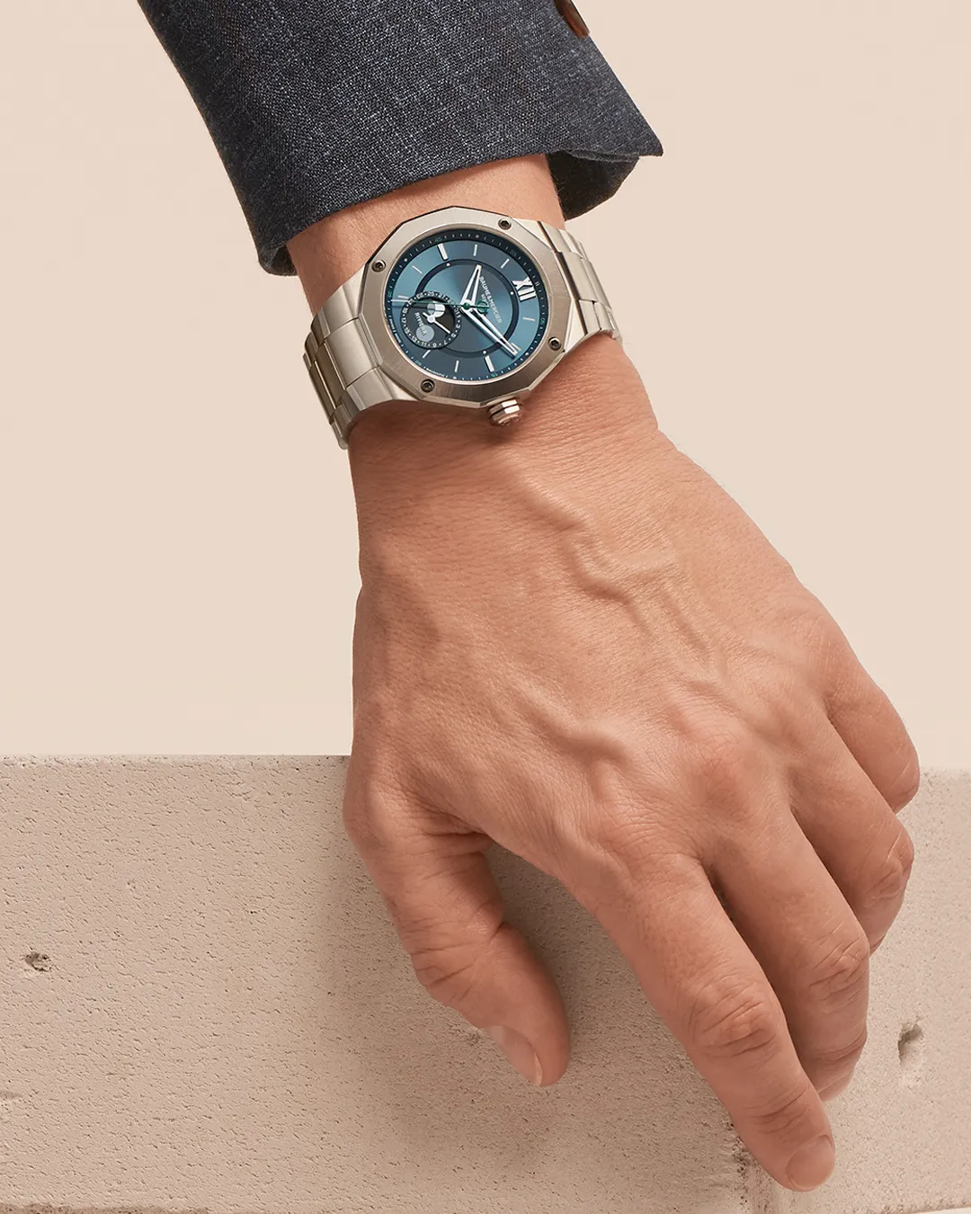 Il Rivera 10682 è un’ode alla luna. Dotato del nostro movimento di manifattura Baumatic, questo orologio sportivo in acciaio inossidabile lucido e satinato presenta un quadrante blu laccato con rehaut ed è montato su un bracciale intercambiabile in acciaio inossidabile lucido e satinato.